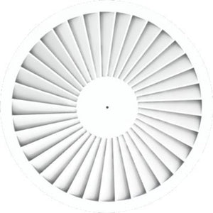 späth Dralldurchlass Serie DAFT. Hochinduktiver Dralldurchlass (quadratisch/rund) für Zuluft/Abluft aus verzinktem Stahlblech mit feststehenden, radial angeordneten Luftleitelementen. Montage über Mittelschraube.