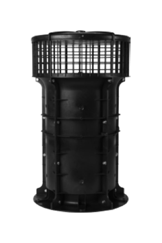 Der speziell für Hybridlüftung DC-Niederdruckventilator sorgt dafür, dass der Lüftungsschacht permanent im Unterdruck gehalten wird. Der Ventilator wird hierfür auf dem Lüftungsschacht montiert.