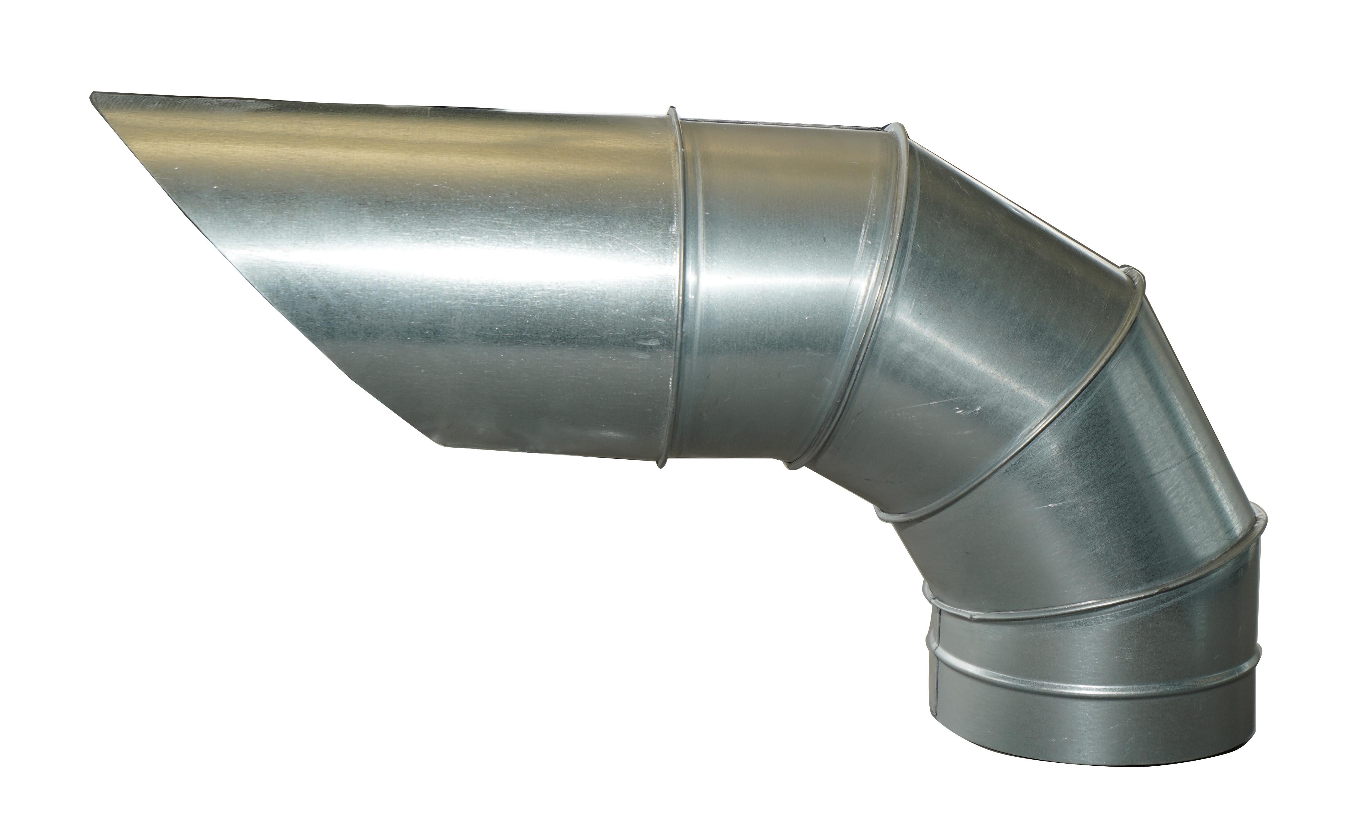 Ausblasbogen 90° mit Vogelschutzgitter aus verz. Stahlblech (Typ AB90), aus Edelstahl (Typ VA-AB90). Ausblasbogen 135° auf Anfrage.