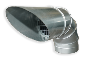Ausblasbogen 90° mit Vogelschutzgitter aus verz. Stahlblech (Typ AB90), aus Edelstahl (Typ VA-AB90). Ausblasbogen 135° auf Anfrage.