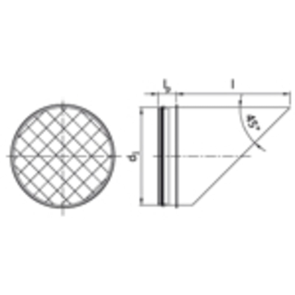 Ausblasstutzen Edelstahl matt mit Gitter VA-AS 45° abgeschrägt NW 500