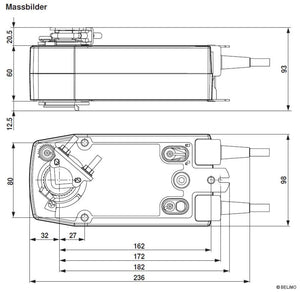 Belimo Federrücklaufantrieb, Auf-Zu, AC/DC 24 V, 20 Nm, mit 2 integrierten Hilfsschaltern SF24A-S2