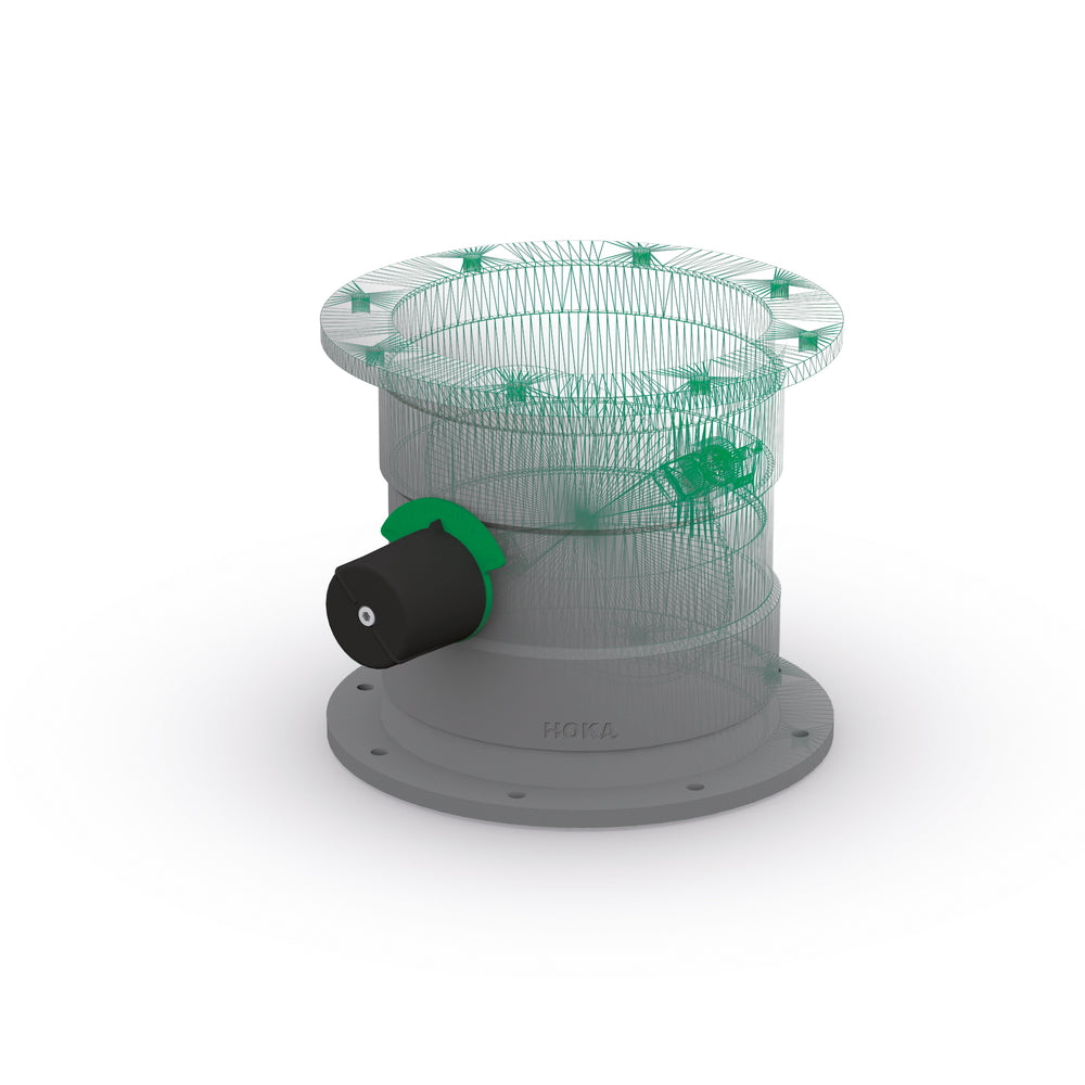 Drosselklappe aus PPS (Polyphenylensulfid) mit beidseitigen Flanschen und DrehknopfKunststoff-Formteil rund mit innenliegendem Anschlag zur Verbindung von Rohren in einer Abluftanlage mittels Schweißverfahren. Als Drosselklappe zum manuellen Einstellen von Volumenströmen durch stufenlosesVerstellen des Klappenblatt mittels eines Drehknopfes.