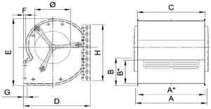 Die Compact-Gebläse (Radialventilatoren) sind doppel-/einseitig saugend, mit Fischbach-Scheibenanker-Motor, 4-polig, 230V/400V/50 Hz/60 Hz, 0 100 % spannungsregelbar, Isolierstoffklasse F (155°C) nach VDE 0530. Motorschutzart IP 65 (elektrischer Teil) nach DIN 40050 mit CE-Zeichen. Gebläseinnenaggregat mit feststehender Motorachse an Gummi-Metall-Verbindungen (Schwingungsdämpfer) im Gehäuse befestigt. Gebläsegehäuse aus Stahlblech verzinkt, auf Wunsch auch Edelstahl-Ausführung oder Stahlblech lackiert. Die Befestigungswinkelschienen sind durch eine große Anzahl Rundlöcher sowie durch Punktschweißmuttern am Gehäuse vielseitig versetzbar. Langlöcher erleichtern die Befestigung am Objektträger.