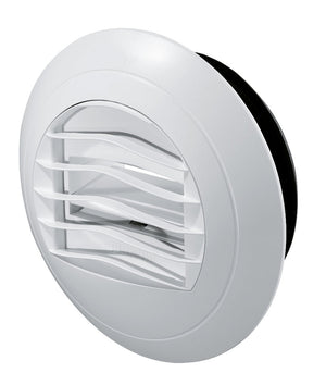 Einbaufertiges Abluftelement mit Einbauring aus weißem Kunststoff, zum Einschub in Rohre mit ND 125 mm. Bewirkt konstanten Volumenstrom bei unterschiedlichen Druckverhältnissen zwischen 40 und 160 Pa. Für Wand- und Deckeneinbau geeignet. Hochwertiges Design in aerodynamischer Form mit niedrigen Schallwerten.