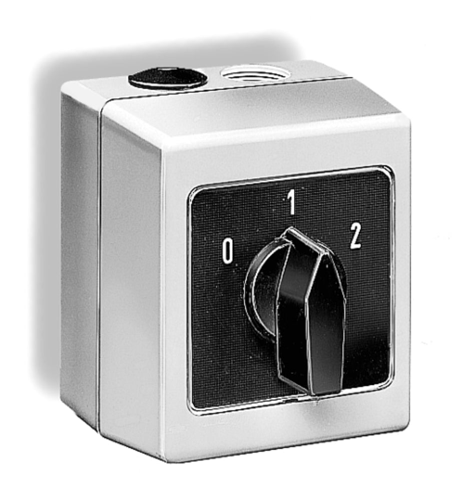 Drehzahlum- und Ein-/Aus-Schalter für zweitourige Wechselstrom-Ventilatoren. Für Auf- und Unterputzmontage geeignet.