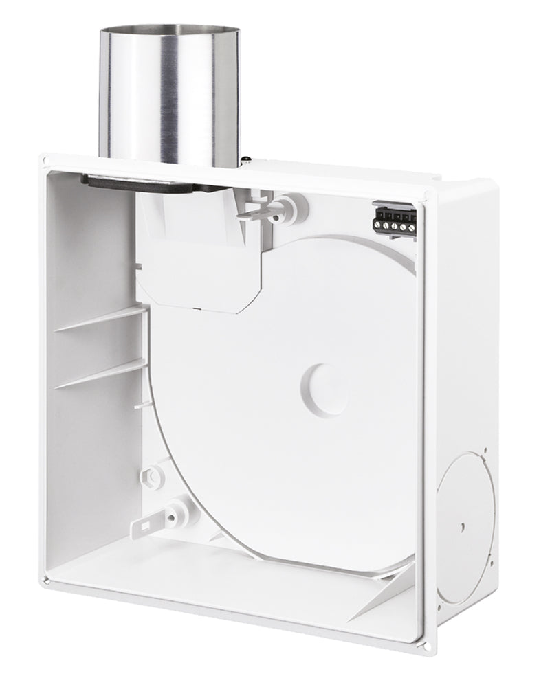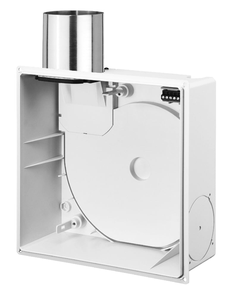 UP-Gehäuse aus Kunststoff mit Brandschutz-Absperrelement K 90, Metall-Ausblasstutzen mit selbsttätiger Rückschlagklappe und Absperrung bei Schmelzlotauslösung. Ausblasstutzen seitlich nach oben (Lieferweise), links oder rechts drehbar. Mittels Zubehör-Set (-ARS, Nr. 8185) umsteckbar für rückseitigen Luftaustritt in beliebiger Position. Wieder einsetzbarer Klapp-Putzdeckel. Sonst wie ELS-GU. Anschluss DN 80 mm. Einsatzgebiet Zur Lüftung von Küche*, Bad oder WC. Mittels Zubehör-Set (-ZS, Nr. 8186) auch für Zweiraumlüftung von Bad und WC. UP-Einbau in Decke oder Wand, auch außerhalb von K 90-Schächten. Anbindung an Hauptleitung mittels Stahlrohr. Ein oder zwei Geräte pro Etage bis zu 20 Stockwerken. * Bei Wohnungsküchen Ventilator-Einsatz mit 100 m³/h empfohlen.