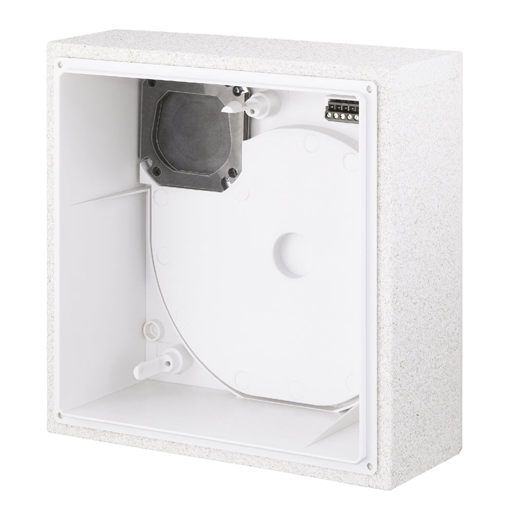 Unterputzgehäuse mit Brandschutz-Ummantelung K 90, Metall-Ausblasstutzen mit selbsttätiger Rückschlagklappe und Absperrung bei Schmelzlotauslösung. Ausblasstutzen rückseitig, beliebig um 90° drehbar. Für kürzeste Anbindung an die Hauptleitung. Steckverbindung für elektrischen Anschluss herausnehmbar. Wieder einsetzbarer Klapp-Putzdeckel. Anschluss DN 80 mm. Einsatzgebiet Zur Lüftung von Küche*, Bad oder WC. UP-Einbau in Wand, Decke und K 90 qualifizierte Lüftungsschächte. Anschluss von 1 oder 2 Geräten pro Etage bis zu 20 Vollgeschossen möglich. * Bei Wohnungsküchen Ventilator-Einsatz mit 100 m³/h empfohlen.