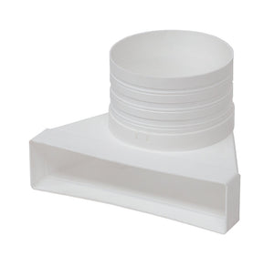 Übergangstück von rund auf eckig. Stecksystem aus weißem, antistatischem Kunststoff. Maße: 218 mm x 55 mm (äquivalenter Querschnitt 125 mm).