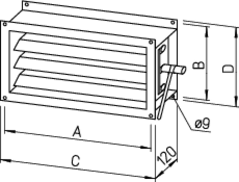 Rahmengehäuse mit beidseitigem Anschlussflansch aus verzinktem Stahlblech. Maßlich zu Kanalventilatoren passend. Lamellen als Hohlkörper ausgebildet. Achsen in Kunststoff gelagert, gleichlaufend, durch außenliegenden Stellhebel verstellbar. Stellmechanismus ebenfalls außerhalb des Luftstroms und somit gegen Betriebsstörungen durch Verschnutzung gesichert.