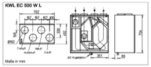 Helios KWL EC 200 W ET L, Lüftungsgerät links mit WRG EC-Motoren, Enthalpie Tauscher Auto-Bypass und