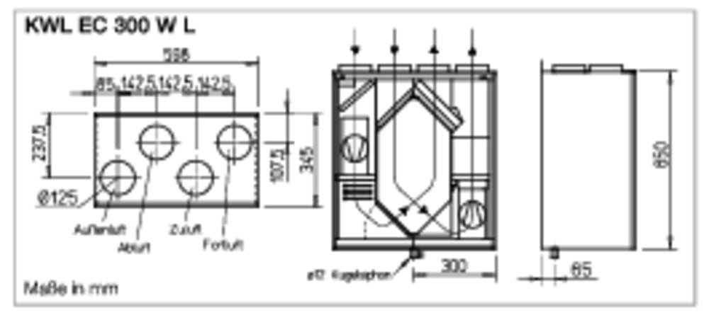 Kompaktgerät mit Wärmerückgewinnung für die zentrale Be- und Entlüftung von Wohnhäusern und Etagenwohnungen. Ausgestattet mit Helios easy-Control, dem innovativen Steuerungskonzept für einfachste Netzwerkanbindung und Webbrowser-Bedienung. Zwei geräuscharme Hochleistungs-Radialventilatoren mit energiesparenden EC-Motoren sorgen für die Luft-Zu- und Abführung. Wartungsfrei, für evtl. Reinigung einfach entnehmbar. Saubere Außenluftzuführung über G4-Filter, optional ist zusätzlich ein F7-Pollenfilter erhältlich. Abluftseitig ist dem Wärmetauscher ein G4-Filter vorgesetzt. Wahlweise mit hocheffizientem Kunststoff-oder Enthalpie-Wärmetauscher für zusätzliche Feuchterückgewinnung. Großflächiger Kreuzgegenstrom-Wärmetauscher aus Kunststoff hat einen Wärmebereitstellungsgrad von bis zu 90 %. Typen ,,ET sind mit hocheffizientem Enthalpie-Wärmetauscher für zusätzliche Feuchterückgewinnung ausgestattet. TÜV-geprüfter DIBt-Wärmebereitstellungsgrad von bis zu 116 %.