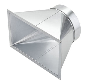 Übergangsstück von Geräteflansch auf runde Rohrsysteme mit DN 250 mm. Einfache Montage über vier Befestigungsschrauben.