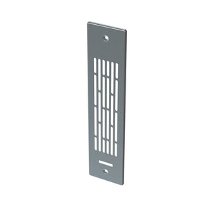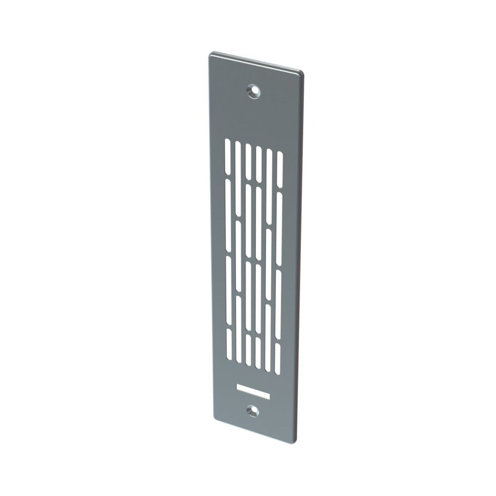 Edelstahl-Außengitter zu Rohbauset Laibung für dezentrales Lüftungsgerät KWL EC 45. Inkl. Edelstahl-Kondensat-Ablauf und aufgeklebter Dichtung. Maße: 324 x 74 mm