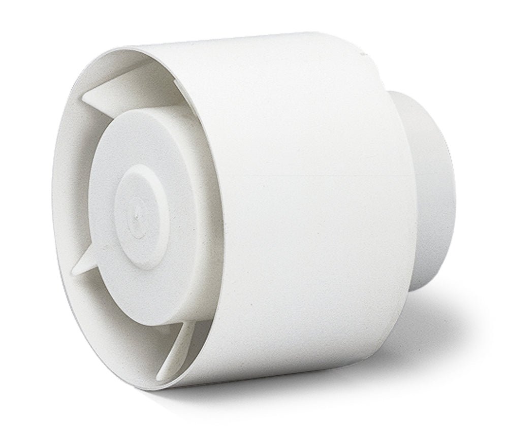 Rohreinschubventilator, axiale Bauart, direkt angetrieben.Rohrhülse mit glatten Enden aus Kunststoff für Einschub in Rohre mit NW 150 passend.Laufrad mit 5 profilierten Schaufeln aus Kunststoff, hoher Wirkungsgrad.Wechselstrom-Spaltpol-Motor mit thermischem Überlastungsschutz für Dauerbetrieb mit wartungsfreien lebensdauergeschmierten Kugellagern, reversierbar.