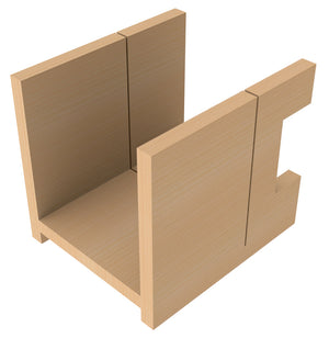 Praktische Schneidehilfe, Buche Multiplex 15 mm, für einfaches Ablängen des RenoPipe Kanals.