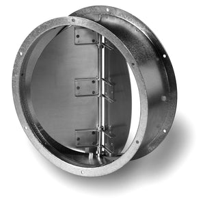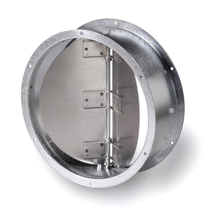 Zur Verhinderung von Kaltlufteinfall bei stehendem Ventilator. Funktion durch Ventilatorbetrieb. Zylindrisches Stahlblechgehäuse mit beidseitigen Flanschen. Direkt auf die Ventilatorgrundplatte bzw. den Flansch anschraubbar. Lochbild nach DIN 24155. Geräuscharmer Betrieb. Federmechanismus außerhalb Luftstrom, Zuhaltekraft einstellbar.
