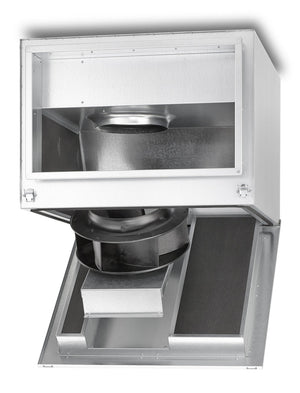 SILENT Kanalventilator EC schallgedämpft, regelbar 3-PH 380-480V 50/60Hz. Radial EC-Kanalventilator schallgedämpft, zur direkten Montage in rechteckiges Kanalsystem, Ventilator-Einheit herausschwenkbar. Gehäuse aus verzinktem Stahlblech mit beidseitig genormten Kanal-Flanschprofilen, raumsparende Bauweise, Schallabsorbierende Innenauskleidung mit 50mm starken Mineralfaserplatten hinterlegt. Servicefreundlich durch ausschwenkbare Motor-Laufrad-Einheit. Hochleistungs-Radial-Laufrad mit rückwärts gekrümmten Schaufeln aus Kunststoff und verzinktem Stahl. Vibrationsfreier Lauf durch dynamische Wuchtung. Aerodynamisch optimiert, Einströmung über Düse. Antrieb durch energiesparenden, drehzahlsteuerbaren EC-Außenläufermotor in Schutzart IP44 mit höchstem Wirkungsgrad. Wartungs- und funkstörungsfrei, kugelgelagert. Integrierte elektronische Temperaturüberwachung für EC-Motor und Elektronik. Stufenlose Drehzahlsteuerung mit Potentiometer oder stufenlose Drehzahlregelung mit Universal-Regelsystem EUR-EC. Anschluss über serienmäßiger Klemmenkasten (IP54) an ausgeführtem Kabel montiert.