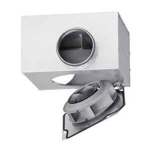 EC Radial-Rohrventilator mit geräuschgedämpftem, flachem Gehäuse.Gehäuse in längerer Bauform aus verzinktem Stahlblech mit schalldämmender, über 50 mm starker Mineralwolle-Auskleidung. Serienmäßige Lieferung saug- und druckseitig mit Anschlussstutzen und Lippendichtung für Normrohr-Durchmesser. Motor-Laufrad-Einheit ausschwenkbar zur Reinigung und Revision. Laufrad: Energiesparendes Radiallaufrad mit rückwärts gekrümmten Schaufeln aus hochwertigem Kunststoff. Für geräuscharmen Lauf dynamisch gewuchtet.Antrieb durch energiesparenden, drehzahlsteuerbaren EC-Außenläufermotor in Schutzart IP44 mit höchstem Wirkungsgrad. Wartungs- und funkstörungsfrei, kugelgelagert. Integrierte elektronische Temperaturüberwachung für EC-Motor und Elektronik. Stufenlose Drehzahlsteuerung mit Potentiometer oder stufenlose Drehzahlregelung mit Universal-Regelsystem EUR-EC. Anschluss über serienmäßiger Klemmenkasten (IP55) außen am Gehäuse