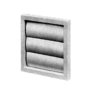 Selbsttätige Überdruck-Klappe zum außenwandseitigen Verschluß von Lüftungsrohren. Rückseitig mit konischem Stutzen und Schaumstoffband für Einschubbefestigung. Rahmen und Lamellen aus UV-beständigem und bruchfestem Kunststoff, Farbe weiß.