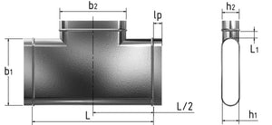 m+a Abzweig ATHO oval, horizont., b1xh1=350x100mm, für Abzweig b2xh2=260x50mm, Einbaulänge=320mm