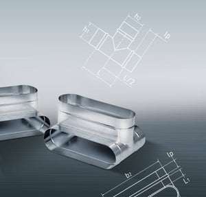 m+a Abzweig ATVO oval, vertikal, b1xh1=1030x300mm, für Abzweig b2xh2=1030x300mm, Einbaulänge=400mm