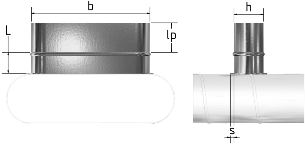 m+a Anschlussstutzen ASTO oval 90°, BxH=650x400mm, Einstecktiefe=80mm