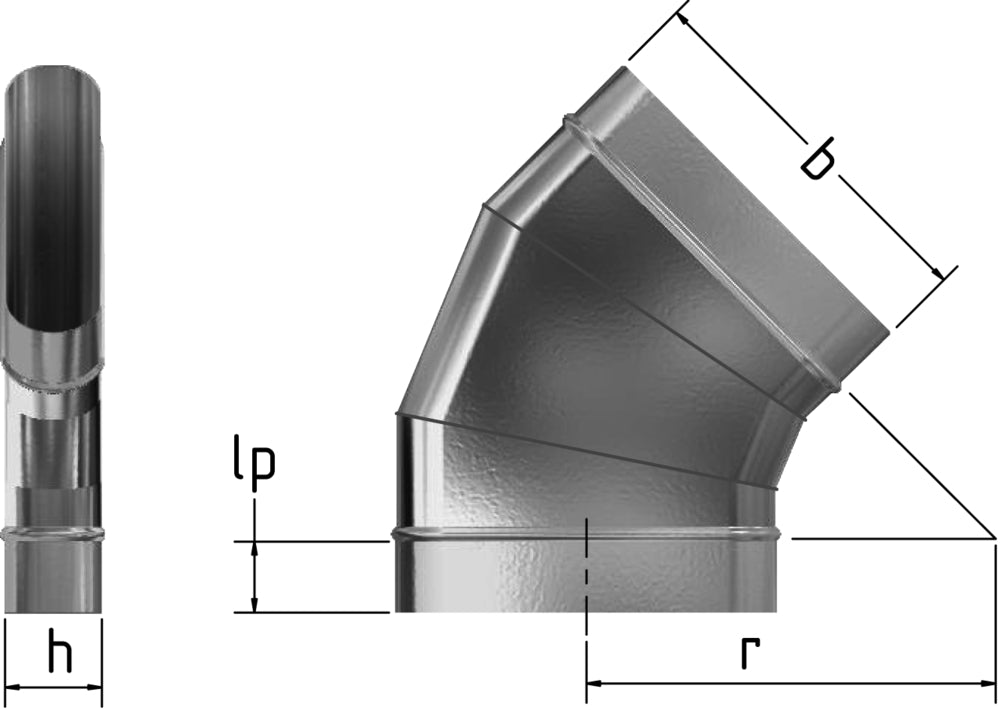 m+a Bogen 45° BHSO oval, horizontal, BxH=1830x450mm, Einstecktiefe=90mm