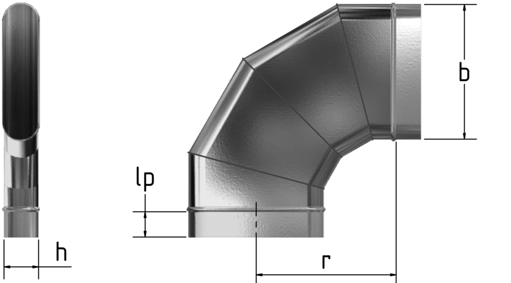 m+a Bogen 90° BHSO oval, horizontal, BxH=580x250mm, Einstecktiefe=90mm