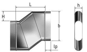 m+a Etage ETGHO oval, horizontal, BxH=630x150mm, Einbaulänge=991mm, Versprunghöhe=630mm