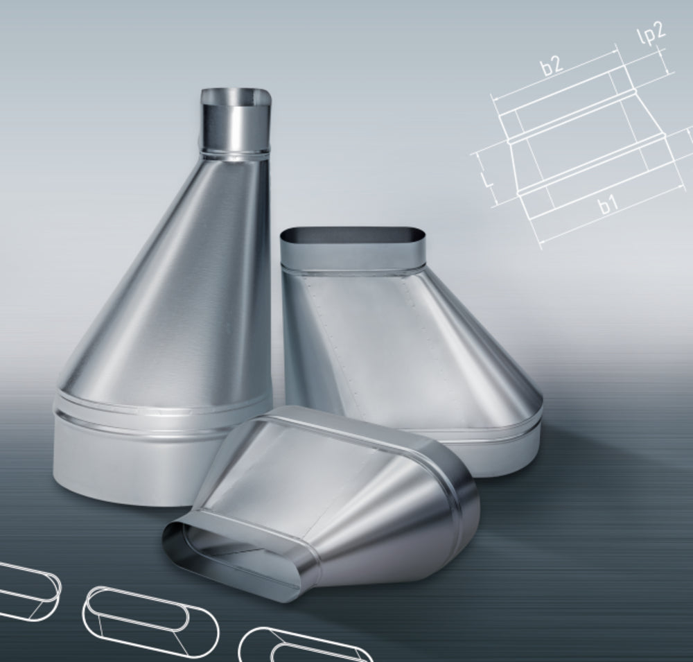 m+a Reduzierung USO oval-oval, symm., b1xh1=1670x450mm auf b2xh2=700x450mm, Einbaulänge=800mm