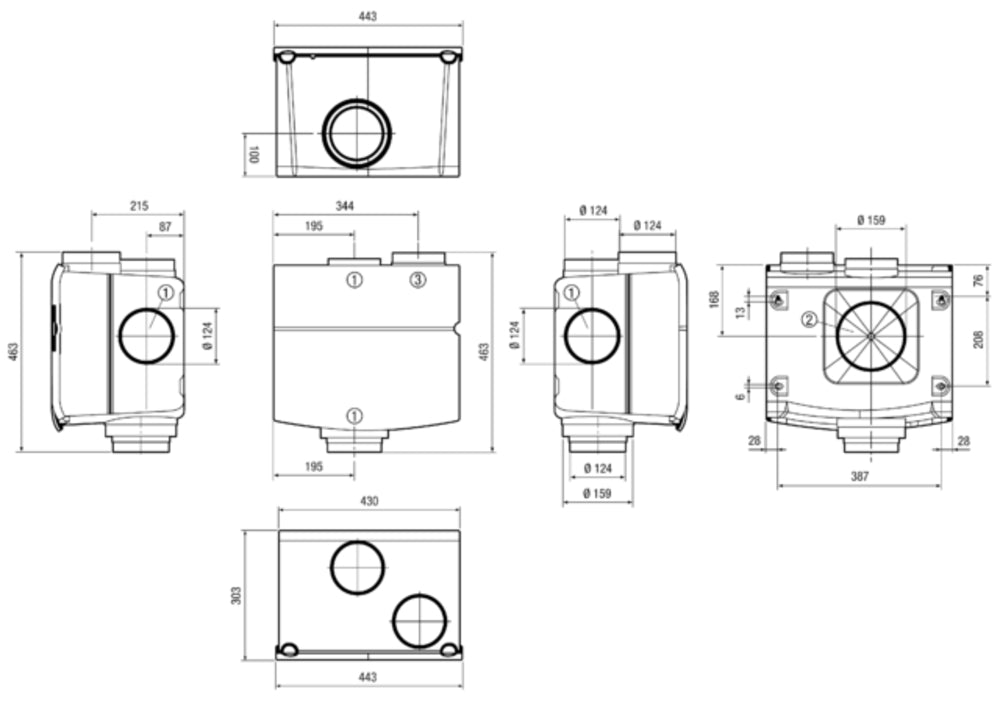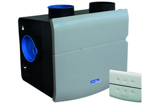Zentrales Entlüftungsgerät. Zur gleichzeitigen Entlüftung mehrerer Räume in Einfamilienhäusern oder Wohnungen. Schutzart IP 20. Gehäuse einfach zu reinigen. Das Gerät ist mit einem leise laufenden und energieeffizienten EC-Motor ausgestattet. Mit 5 möglichen Abluftanschlüssen (3 x DN 125, 1 x DN 125/DN 160) und 1 x DN 160 = Sollbruchstelle), Mit einem Fortluftstutzen DN 125. Motor und die Elektronik sind integriert. Max. sind 28 Drehzahlstufen möglich. Standardmäßig auf die Stufen 1(a*) = Niedrig, 3(a*) = Normal und 11 (a*) = Hoch voreingestellt. Die voreingestellten Drehzahlstufen können problemlos über sogenannte DIP-Schalter verändert werden. Mit integriertem Feuchtigkeitssensor für automatische feuchteabhängige Ansteuerung. Kabellose Fernbedienung ZEG2 EC-FB im Lieferumfang enthalten. * = es gibt die Kennlinie a und die Kennlinie b, je nach Einstellung des DIP-Schalters 7, Steuerung: Kabellose Fernbedienung ZEG2 EC-FB mit Feuchtigkeitssensor-Ansteuerung und 6 Einstelltasten (Feuchtigkeitssensor ist im ZEG2 EC enthalten). Funkfrequenz 868,3 MHz. Abmessungen (HxBxT): 83x80x28 mm. Schutzart: IP 30. Statusanzeigen per LED. Einstellungen, Abwesenheits-Betrieb (Energiesparmodus), Automatik-Betrieb regelt Lüftungsstufe gemäß den ermittelten Feuchtesensor-Messwerten, Timer-Betrieb(15/30/60Minuten) in Stufe Hoch - dann wieder zuletzt gewählte Stufe, 1. Niedrige Drehzahl - Standardposition bei Nacht, 2. Normale Drehzahl - Standardposition bei Tag, 3. Hohe Drehzahl - beim Kochen und Duschen, Zum Automatik-Betrieb: In dieser Position läuft das Abluftgerät bei niedriger Drehzahl bis ein deutlicher Anstieg der relativen Luftfeuchtigkeit in der Abluft innerhalb von 3 Minuten (einstellbar 5 % oder 10 % mit DIP-Schalter 7) gemessen wird. Das Gerät schaltet dann von Stufe Niedrig (1) auf Normal (2) oder Hoch (3) je nach Einstellung von DIP-Schalter 7. Wird ein Absinken der Feuchte festgestellt läuft das ZEG2 EC für 15 oder 30 Minuten in Stufe Normal, bzw. Hoch (Nachlaufzeit mit DIP-Schalter 8 einstellbar). Anschließend schaltet das Gerät auf Stufe Niedrig zurück. Zum Abwesenheits-Betrieb: Das ZEG2 EC läuft im Energiesparmodus und reagiert nicht auf den Feuchtesensor. Montagehinweise: Die Fernbedienung ZEG2 EC-FB kann in feuchten Räumen installiert werden, aber nicht direkt in der Duschkabine. Es darf kein Spritzwasser an die Fernbedienung gelangen (Relative Feuchte max. 90 %). Das ZEG2 EC Gerät muss in einem trockenen Raum aufgestellt werden, es darf nicht mit Spritzwasser in Berührung kommen (Relative Feuchte max. 90 %). Elektrischer Anschluss: Flexibles Anschlusskabel ca. 1,2 m lang.Artikel: ZEG2 EC, Fördervolumen: 535 m3/h / 600 m3/h / Systemdruck bei 200 Pa bzw. Systemdruck bei 100 Pa, Drehzahlsteuerbar: ja, SEC average: -20,6 kWh/(m2*a), Energieeffizienzklasse: D, Spannungsart: Wechselstrom, Bemessungsspannung: 230 V, Netzfrequenz: 50 Hz, Leistungsaufnahme: 2 W - 85 W, IMax: 0,05 A - 0,8 A, Schutzart: IP 20, Aufstellungsort: Keller / Speicher / Kniestock / Hauswirtschaftsraum / Heizungsraum / Technikraum, Einbaulage: senkrecht / waagerecht, Systemart: zentral, Material: Kunststoff, Gewicht: 4,6 kg, Anschlussdurchmesser: 125 mm, Breite: 443 mm, Höhe: 463 mm, Tiefe: 303 mm, Gleichstrommotor: true, Max. Drehzahl: 3200 1/min, WRG über: ohne