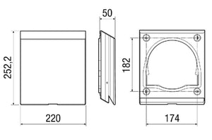 Außenabdeckung aus Edelstahl (V4A) gebürstet. Mit integrierter Kondensatabtropfkante. Die integrierten Luftleitelemente halten die Abluft von der Außenwand fern. Somit werden die Verfärbungen und die Schmutzablagerungen an der Außenfassade deutlich minimiert. Die strömungsoptimierte Haube ist zusätzlich mit einer Schalldämmeinlage ausgestattet. Wird für den Einsatz der Geräte in windexponierten Bereichen empfohlen. Eine Außenabdeckung wird als notwendiges Zubehör für die Endmontage-Sets PP 45 K, PP 45 O und PP 45 RC benötigt.Artikel: PP 45 AE, Einbauort: Außenwand, Material Gehäuse: Edelstahl, gebürstet, Farbe: Edelstahl, gebürstet, Gewicht: 0,98 kg, Breite: 220 mm, Höhe: 252,2 mm, Tiefe: 50 mm