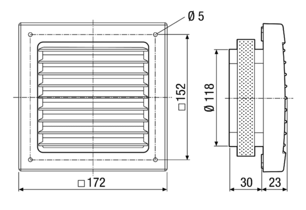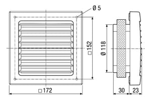 Außengitter zur Be- und Entlüftung. Außenwandanschluss bei Verwendung der Wandhülse WH100 & 120 & 150. SG 100 & 120 & 150/1: Mit verdeckten Schraubenlöchern. Zubehör Fliegengitter FG 100 & 120 & 150 einsetzbar. SG 100 B: Außengitter in braun. SG 15: Mit verzinktem Schutzgitter. Dichtband im Lieferumfang enthalten. Ersatzluftfilter zu SG 120: SF 120.Artikel: SG 120, Luftrichtung: Be- und Entlüftung, Einbau: außen, Einbauort: Wand, Einbauart: Aufputz, Material: Kunststoff, witterungs-, UV-beständig, Farbe: verkehrsweiß, ähnlich RAL 9016, Gewicht: 0,165 kg, Geeignet für Nennweite: 125 mm, Breite: 172 mm, Höhe: 172 mm, Tiefe: 53 mm, Umgebungstemperatur: 60 °C, Geeignet für Boxlüfter: nein, Geeignet für Dachlüfter: nein, Geeignet für Rohrlüfter: ja, Geeignet für Wärmerückgewinnungsanlagen: ja, Geeignet für Wandaufbaulüfter: nein, Geeignet für Wandeinbaulüfter: nein, Geeignet für Wohnhauslüfter: ja, Geeignet für Zentrifugallüfter: nein, Geeignet für Zirkulationslüfter: nein
