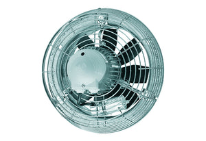 Schutzgitter auf der Saugseite, gelb chromatiert, Berührungsschutz gemäß DIN EN ISO 13857. 8-blättrige Flügelräder aus glasfaserverstärktem Polyamid. Dynamisch gewuchtet in 2 Ebenen, gemäß Gütestufe 6.3, DIN ISO 1940, Teil 1. Einbau in jeder Lage möglich. Förderrichtung: Nachfolgende Abbildung zeigt die Förderrichtung: Förderrichtung A: Über den Motor saugend, Standard. Förderrichtung B: Über den Motor blasend, auf Anfrage. Drehrichtung, Reversierbetrieb: Der Volumenstrom verringert sich um ca. 35 % bei anormaler Förderrichtung. Motor: Asynchronmotor. Drehzahlsteuerbar. Ausnahme: Typ EZQ 45/6 B, EZS 45/6 B, DZQ 40/2 B und DZS 40/2 B. Reversierbar. Ausnahme: Ventilatoren mit Spaltpolmotor (...-E). Nicht zur Förderung wasserdampfgesättigter Luft geeignet. Drehstrommotor: Typenreihen DZQ und DZS. Bemessungsspannung 400 V, 50 Hz. Schutzart IP 55. Ausnahme DZQ/DZS... D IP 54. Thermischer Überlastungsschutz serienmäßig. Ausnahme: Bei DZQ/DZS 25/4 D und polumschaltbaren Axial-Wandventilatoren auf Anfrage erhältlich. Die Anschlüsse sind potenzialfrei auf Klemmen geführt und müssen an einen Motorvollschutzschalter z.B. MV 25 oder den Steuerstromkreis eines Schützes angeschlossen werden. Polumschaltbare Ventilatoren: Überlastungsschutz mit bauseitig zu beschaffendem Motorvollschutzschalter gewährleisten. Polumschaltbare Motoren mit den Drehzahlverhältnissen 8/4 oder 4/2 sind im Dahlanderprinzip geschaltet. Elektrischer Anschluss: An Klemmleiste im Abschlussdeckel des Motors. Sicherheitshinweise: Der Ventilator darf nur in Betrieb genommen werden, wenn der Berührungsschutz des Laufrades gemäß DIN EN ISO 13857 gewährleistet ist.Artikel: DZS 40/42 B, Ausführung: Stahlwandring, Fördervolumen: 3270 m3/h / 6700 m3/h, FördervolumenNenn: 3270 m3/h / 6700 m3/h / im opt. Wirkungsgrad, Druck pfs, Nenn: 95 Pa - 350 Pa - im opt. Wirkungsgrad, Drehzahl nNenn: 1480 1/min - 2920 1/min - im opt. Wirkungsgrad, Drehzahl: 1518 1/min / 2944 1/min, Laufradtyp: axial, Drehzahlsteuerbar: ja, Reversierbarkeit: ja, Spannungsart: Drehstrom, Bemessungsspannung: 400 V, Netzfrequenz: 50 Hz, Nennleistung: 245 W / 1585 W / im opt. Wirkungsgrad, INenn: 0,75 A / 2,6 A / im opt. Wirkungsgrad, IMax: 4,3 A, Schutzart: IP 55, Wärmeklasse: F, Polumschaltbar: ja, Polanzahl bei hoher Drehzahl: 2, Polanzahl bei niedriger Drehzahl: 4, Netzzuleitung: 5 / 1,5 mm2, Einbauort: Wand / Decke, Einbauart: Aufputz, Einbaulage: waagerecht / senkrecht, Material: Stahlblech, verzinkt, Gewicht: 22,25 kg, Nennweite: 400 mm, Breite: 580 mm, Höhe: 580 mm, Tiefe: 345 mm, Fördermitteltemperatur bei Nennstrom: 60 °C, Fördermitteltemperatur bei IMax: -20 °C bis 60 °C, Gesamteffizienz e: 41,1 %, Messkategorie: A, Effizienzkategorie: statisch, Effizienzgrad N: 46,2, VSD erforderlich: nein, Herstellungsjahr: siehe Typenschild, Herstellername / Amtliche Registriernummer / Niederlassungsort des Herstellers: Maico Elektroapparate-Fabrik GmbH / Registergericht Freiburg, HRB 601233 / Villingen-Schwenningen, PBEP / FördervolumenBEP / Pfs, BEP: 1,585 kW / 6700 m3/h / 350 Pa, nBEP: 2920 1/min, spezifisches Verhältnis: ca. 1, Informationen zur Zerlegung und Entsorgung: siehe Montageanleitung, Informationen zu Einbau, Betrieb und Instandhaltung: siehe Montageanleitung, Verwendete Gegenstände bei der Effizienz-Messung, die nicht durch die Messkategorie beschrieben sind: -, SchallleistungspegelLWA7: 78 dB(A) / 94 dB(A), Verschlussklappe: ohne