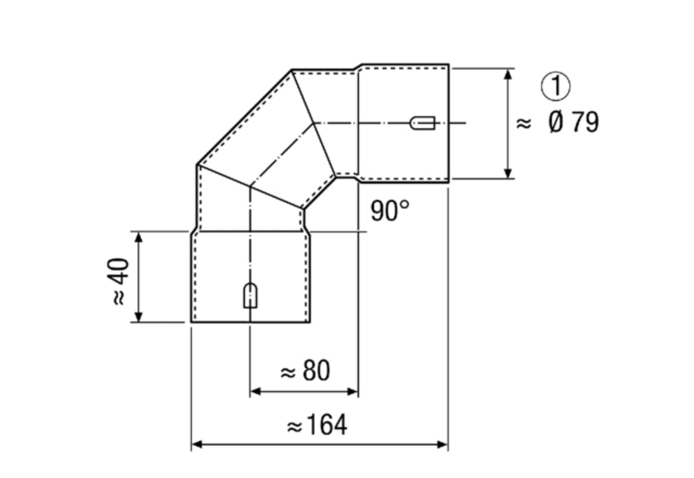 90°-Kurzbogen aus Blech zur Aufnahme des flexiblen Lüftungsrohrsystems MAICOFlex. Das Flexrohr MF-F wird in den Bogen eingeschoben. Jeder Bogen ist am Bogenende mit jeweils 2 eindrückbaren Befestigungsklammern ausgestattet, welche eine schnelle Fixierung des Flexrohrs ermöglicht. Strömungsgünstige Form. Einfache und schnelle Montage.Artikel: MF-B75, Material: Stahlblech, verzinkt, Gewicht: 0,278 kg, Nennweite: 75 mm, Breite: 164 mm, Höhe: 80 mm, Tiefe: 164 mm, A: 40 mm, B: 80 mm