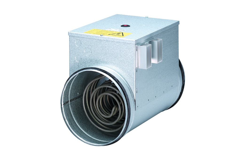 Elektro-Lufterhitzer für lüftungstechnische Anlagen. Mit integriertem Temperaturregler. Mit nicht glühenden Rohrheizkörpern aus Edelstahl. Raumfühler FR 30 P und Kanalfühler FL 30 P im Lieferumfang enthalten. Bei verschmutzten Rohrheizkörpern erhöhte Brandgefahr. Zur Vorbeugung Luftfilter TFE installieren. Empfohlenes Zubehör: Luftstromwächter LW 9 und Luftfilter TFE... . Sicherheitshinweise: Bei verschmutzten Rohrheizkörpern erhöhte Brandgefahr. Zur Vorbeugung Luftfilter TFE installieren. Ausführung gemäß VDE, Geräte- und Produktsicherheitsgesetz und den zuständigen EU-Richtlinien. Mit 2 unabhängig voneinander schaltenden Temperaturbegrenzern. Mindestabstand zu brennbaren Materialien: 150 mm (bei Unterschreitung geeignete Isolation installieren).Artikel: DRH 25-9 R, Mindestfördervolumen: 270 m3/h, Spannungsart: Drehstrom, Bemessungsspannung: 400 V, Netzfrequenz: 50 Hz, IMax: 13 A, Schutzart: IP 43, Einbau: innen, Einbaulage: waagerecht / senkrecht, Material Gehäuse: Stahlblech, verzinkt, Gewicht: 6,5 kg, Nennweite: 250 mm, Breite: 250 mm, Höhe: 331 mm, Tiefe: 375 mm, A: 250 mm, Lufterhitzerart: elektrisch, Heizleistung: 9000 W, Geeignet für Boxlüfter: nein, Geeignet für Dachlüfter: nein, Geeignet für Rohrlüfter: ja, Geeignet für Wärmerückgewinnungsanlagen: nein, Geeignet für Wandaufbaulüfter: nein, Geeignet für Wandeinbaulüfter: nein, Geeignet für Wohnhauslüfter: nein, Geeignet für Zentrifugallüfter: nein, Geeignet für Zirkulationslüfter: nein