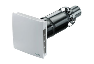Besondere Eigenschaften: PPB30 O Gerät ist eine perfekte Alternative um eine kostengünstige Entlüftung des Bades mit Wärmerückgewinnung sicherzustellen. Eine LowCost-Lösung fürs Bad könnte die Kombination von 1 x PPB 30 O + 1 x RLS 45 O sein. (Achtung: Die Raumluftsteuerung hat die Schutzart IP 00). Dabei kann auch der Abluftbetrieb von 45 m3/h (ohne Wärmerückgewinnung und ohne Volumenstromausgleich) realisiert werden. Die PPB30 O Geräte sind primär für den Einbau in den Ablufträumen konzipiert. Die Schutzart IPX4 erleichtert die Wahl des Montageortes im Bad. Die Energieeffizienz vom PPB30 O überzeugt mit einem SPI-Wert von 0,19Wh/m3. Durch die energiesparenden Motoren, einem sehr guten sensorgeführten Betrieb erreichen die Geräte die Energieeffizienzklasse von A. PPB30 O Gerät kann in 5 Lüftungsstufen 5/12/18/22/26 m3/h und 2 Betriebsarten Dauerentlüftung mit Wärmerückgewinnung, Querlüftung ohne Wärmerückgewinnung betrieben werden. Strömungsoptimierte Außenabdeckungen im Zubehörprogramm halten die Abluft von der Außenfassade fern. Endmontage-Sets für das Einzelraumlüftungsgerät PushPull Balanced PPB 30 mit zwei Ventilatoren, zwei Keramik-Wärmeübertragern, Innenabdeckung und zwei integrierten Filtern (G3), so dass die Luft in beide Richtungen gefiltert wird. Wärmetauscher: Mit den Hochleistungswärmetauschern und den hocheffizienten EC-Ventilatoren erreichen die Geräte einen Wärmebereitstellungsgrad von 73 % beim Referenzvolumenstrom nach EN 13141-8. Montagehinweise: Montage erfolgt in 2 Schritten: Einbau der Rohbauhülse PP 45 RHK (DN 160) oder RHL (DN 160) sowie einer Außenabdeckung in eine Kernlochbohrung DN 160 mit einer Neigung von 1-2 %. Wir empfehlen die Kernbohrung mit DN 182 auszuführen und die Neigung der Hülse mittels beigelegter Styroporkeile auszurichten. Die Rohbauhülse ist mit Putzschutzdeckeln vor Verunreinigungen geschützt. Anschließend folgt die Integration des Endmontage-Sets. Keine Rohrverlegung notwendig und keine Einregulierung der Anlage notwendig. Elektrischer Anschluss: Das Gerät wird betriebsfertig montiert geliefert. Elektrischer Anschluss erfolgt mittels Steckverbindung. Verbindung zur Raumluftsteuerung RLS 45 K oder RLS 45 O über steckbare Steuerleitungen. Die 12 VDC Stromleitung der Raumluftsteuerung RLS 45 K / RLS 45 O zum Gerät ist gleichzeitig die Steuerleitung. Kondensatablauf: Die Abführung des Kondensats erfolgt über eine integrierte Kondensatabtropfkante in der Außenabdeckung.Artikel: PPB 30 O, Fördervolumen: 5 m3/h / 12 m3/h / 18 m3/h / 22 m3/h / 26 m3/h, Energieeffizienzklasse: A, Bemessungsspannung: 12 V DC, SPI-Wert nach DIN EN 13141-8: 0,19 Wh/m3, Maximale Leistungsaufnahme: 1,7 W / 2,5 W / 3,4 W / 4,4 W / 5,3 W, Schutzart: IP X4, Einbaulage: waagerecht, Systemart: dezentral, Material Gehäuse: Kunststoff, Material Wärmetauscher: Keramik, Farbe: verkehrsweiß, ähnlich RAL 9016, Gewicht: 4,626 kg, Filterart: Außen- und Abluftfilter, Filterklasse: G3/G3, Anschlussdurchmesser: 160 mm, Breite: 275 mm, Höhe: 275 mm, Tiefe: 410 mm, Notwendiger Mauerdurchbruch: 162 bis 182 mm, Wandstärke: 320 mm / 500 mm, Wärmebereitstellungsgrad beim Referenzvolumenstrom nach DIN EN 13141-8: 73,3 %, Notwendige Raumluftsteuerung: RLS 45 K oder RLS 45 O, Schalldruckpegel: 23 dB(A) / 35 dB(A) / 43 dB(A) / 48 dB(A) / 51 dB(A) / Abstand 1 m, Freifeldbedingungen, Bewertete max. Element-Normschallpegeldifferenz Dn,w: 37 dB, Art der Lüftung: dezentrale Zu- und Abluft, WRG über: sonstige, Wärmebereitstellungsgrad: 73,3 %