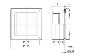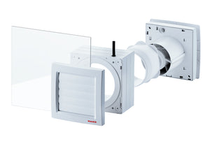 Für den Einbau in Fenster und dünne Wände. Farbe verkehrsweiß ähnlich RAL 9016. Gehäuse aus schlagfestem Kunststoff. Lieferumfang: Außenklappe AP bzw. Außengitter SG, 3 x Distanzrahmen, 2 x Dichtungsringe, Gewindestutzen, 3 x Schrauben zur Ventilatorbefestigung, Zugentlastungsbügel mit 2 x Schrauben, Leitungstülle, Montageanleitung. Montagehinweise: Einfache Montage im Fensterausschnitt durch ineinander verschraubbaren Adapter und Gewindstutzen. Scheibendicke mindestens 3 mm, Scheibenabstand bis 75 mm. Scheibenausschnitt 115 bis 120 mm. Nicht für den Einbau in aufklappbare Doppelfenster geeignet. Elektrischer Anschluss: An der Klemmleiste im Gehäuse des ECA 100 ipro...Artikel: FE 100/1 AP, Einbauort: Fenster / dünne Wand, Einbaulage: waagerecht, Material: Kunststoff, schlagfest, Farbe: verkehrsweiß, ähnlich RAL 9016, Gewicht: 0,4 kg, Breite: 150 mm, Höhe: 150 mm, Tiefe: 103 mm