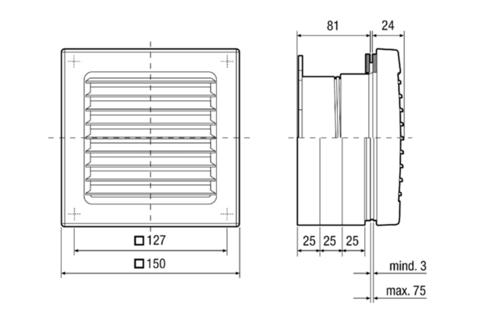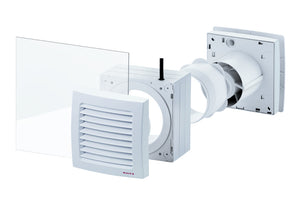 Für den Einbau in Fenster und dünne Wände. Farbe verkehrsweiß ähnlich RAL 9016. Gehäuse aus schlagfestem Kunststoff. Lieferumfang: Außenklappe AP bzw. Außengitter SG, 3 x Distanzrahmen, 2 x Dichtungsringe, Gewindestutzen, 3 x Schrauben zur Ventilatorbefestigung, Zugentlastungsbügel mit 2 x Schrauben, Leitungstülle, Montageanleitung. Montagehinweise: Einfache Montage im Fensterausschnitt durch ineinander verschraubbaren Adapter und Gewindstutzen. Scheibendicke mindestens 3 mm, Scheibenabstand bis 75 mm. Scheibenausschnitt 115 bis 120 mm. Nicht für den Einbau in aufklappbare Doppelfenster geeignet. Elektrischer Anschluss: An der Klemmleiste im Gehäuse des ECA 100 ipro...Artikel: FE 100/1 SG, Einbauort: Fenster / dünne Wand, Einbaulage: waagerecht, Material: Kunststoff, schlagfest, Farbe: verkehrsweiß, ähnlich RAL 9016, Gewicht: 0,41 kg, Breite: 150 mm, Höhe: 150 mm, Tiefe: 103 mm