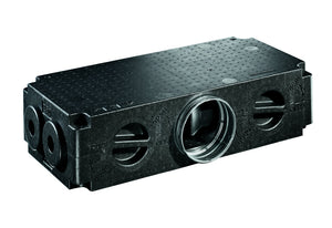 Luftverteiler mit 8 Anschlüssen für Flexrohre MF-F. Aus schalldämmendem Material. Optimale Luftverteilung dank integrierter Strömungskulissen. Mit 2 Revisionsöffnungen seitlich. Mit vorgebohrten Löchern für die Montage mit Gewindestangen. Hohe Lebensdauer und Umweltbeständigkeit.Artikel: MF-V90-8, Luftrichtung: Be- und Entlüftung, Volumenstrom: 300 m3/h / empfohlen, Einbauort: Decke / Wand / Fußboden, Material: Kunststoff EPP, Kunststoffangaben: PVC-frei, Gewicht: 1,8 kg, Anschlussdurchmesser: 160 mm, Anschlussdurchmesser Flexrohr: 90 mm, Anzahl Anschlussstutzen: 8, Breite: 710 mm, Höhe: 185 mm, Tiefe: 350 mm, A: 90 mm