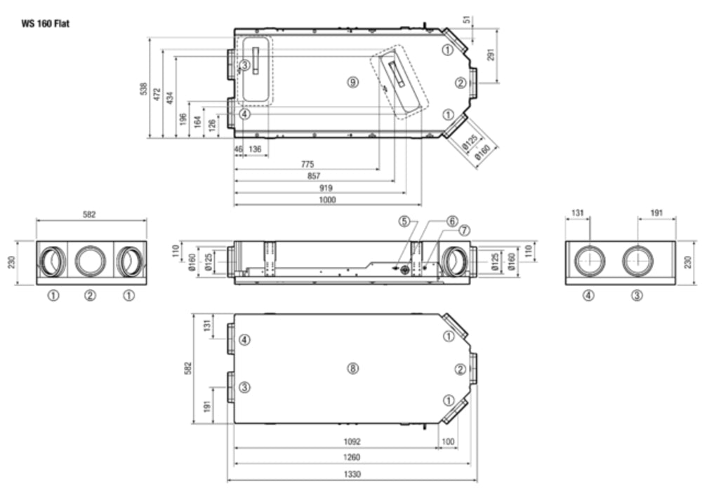 Besondere Eigenschaften: Intelligentes Lüftungsgerät mit Wärme- und Feuchterückgewinnung zur kontrollierten Be- und Entlüftung mit einem Fördervolumen von 40 bis 160 m3/h. Zentralgerät mit Enthalpiewärmetauscher, integriertem Bypass und Vorheizregister. Somit wird die Raumluft bei hohen Außentemperaturen optimal gekühlt und bei tiefen Außentemperaturen komfortabel vorgewärmt. Zwei Zuluftstutzen (links und rechts) und ein Abluftstutzen (mitte) ermöglichen eine kreuzungsfreie Verlegung der Zuluftleitungen. Vollkommene Trennung der Abluft- / Zuluftführung im gesamten Gerät. Dadurch wird unerwünschter Umluftbetrieb verhindert. Viren (z.B. Corona-Virus) und Bakterien werden somit nicht übertragen. Hygienezertifikat nach VDI 6022, Blatt 1 vorhanden. Kompakt und hocheffizient - Energieeffizienzklasse A. Schall- und energieoptimierte Ventilatoren in EC-Technologie. KFW - Förderfähig: Besonders geeignet für den modernen Neubau oder Sanierungen. Montagemöglichkeiten: deckenhängend oder in der Dachschräge. Keine Druckschwankungsempfindlichkeit: Die integrierte /automatische Volumenstromkonstanz-Regelung sorgt für eine dauerhafte Einhaltung des eingestellten Volumenstromes unter sämtlichen Betriebsbedingungen (z.B. Filterverschmutzung, Luftventil-Einstellungen). Somit ergibt sich auch eine einfachere Inbetriebnahme /Luftmengen-Einmessung an den Ventilen. Es ist keine Einregulierung der Volumenströme notwendig. Sehr leises Gerät mit äußerst geringer Aufbauhöhe (23cm): Dadurch besonders für den Einbau in abgehängten Decken geeignet. Darüber hinaus auch für die Installation in der Dachschräge geeignet. Verschiedene Betriebsarten: Aus, Manuell, Auto Sensor, ECO-Abluft, ECO-Zuluft. Raumluftsteuerung RLS 1 WR im Lieferumfang. G4-Filter (ISO Coarse 80%) in der Abluft und F7-Pollenfilter (ePM1 55%) in der Außenluft. Eine Filterkaskade(G4/F7) in der Außenluft ist zur Filterstandzeit-Erhöhung möglich. Das Lüftungsgerät ist mit einem hochmodernen Enthalpie-Wärmetauschern mit Hygienezertifikat nach VDI 6022, Blatt 1 ausgestattet. Bypassbetrieb / Eco-Betrieb: ECO Zuluft, ECO Abluft zur passiven Sommernachtskühlung. Das WS160 Flat ist via APP (air@home) und dem browserbasierten Webtool (www.air-home.de) mittels integrierter LAN-Schnittstelle ansteuerbar. Plug & Play: Einfache Inbetriebnahme durch kostenlose Inbetriebnahmesoftware und serienmäßigen USB-Anschluss für Inbetriebnahme, Steuerungs-Update sowie Service. Serienmäßig integrierter Kombisensor (Feuchte/Temperatur) in der Abluft ermöglicht einen bedarfsgeführten Lüftungsbetrieb sowie eine intelligente Entfeuchtungsstrategie (Überfeuchtungsschutz). Weiterhin zeichnet sich das Gerät durch eine an den wirklichen Bedarf angepasste Frostschutzstrategie aus. Das Wärmerückgewinnungsgerät verfügt über einen Multifunktionskontakt für die Ansteuerung von z.B. Sole-Erdwärmetauscher (ungeregelte Pumpe), Betriebs- u. Störungsanzeige, Vorheiz- oder Nachheizregister, Aussenklappen oder Kühlung. 2 Eingangskontakte (12V und 230V) sind vorhanden für z.B. sicherheitstechnische Abschaltungen. Diverse Ein-/ Ausgänge ermöglichen eine regelungstechnische Verbindung zu anderen haustechnischen Geräten z.B. Wärmepumpe. Integrierte MODBUS-Schnittstelle(TCP/IP u. RTU) für Integration in die Gebäudeleittechnik. Das optionale Steckmodul K-SM ermöglicht die Integration in KNX-Gebäudesysteme. Das optionale Steckmodul E-SM ermöglicht die Integration in EnOcean-Systeme. Optionale Zusatzplatinen ZP 1 und ZP 2 für Erweiterungsfunktionen wie z.B. Druckkonstanz-Regelung der EC-Ventilatoren, Zonenklappe, Sole-EWT (geregelte Pumpe), Filterdifferenzdruckmessung. Maximale Geräte-Flexibilität durch verschiedenste Ausstattungs-/Anschlussmöglichkeiten. Moderne Geräte-Modultechnik ermöglicht eine hohe Benutzerfreundlichkeit für Service und Wartung. Gehäuse: Pulverbeschichtetes Stahlblechgehäuse, Farbe: weißaluminium, ähnlich RAL 9006. Filterwechsel einfach ohne Werkzeug möglich. Dichtes, wärmebrückenfreies, und schallgedämmtes Innengehäuse aus temperaturbeständigem, schall- und wärmedämmendem EPP-Material. EPP-Gehäuse mit sehr guten hygienischen/nicht hygroskopische Eigenschaften, Geräteoberfläche u. Geräte-Innengehäuse sind einfach zu reinigen. Filter: G4-Filter (ISO Coarse 80%) in der Abluft und F7-Pollenfilter (ePM1 55%) in der Außenluft. Werkzeugloser Filterwechsel. Wärmetauscher/Wärmerückgewinnung: Hocheffizienter Enthalpie-Kreuzgegenstrom-Wärmetauscher. Wärmerückgewinnung bis 84% und Feuchterückgewinnung bis 53%. Hygienezertifikat (keine Bakterien, Virenwachstum/Virenübergang) nach VDI 6022,Blatt 1. Wärmetauscher mit Wasser reinigbar, antimikrobiell. Kein Kondensatanschluss notwendig. Bypass: Die integrierte Bypassklappe (100 %-Bypass) mit der bedarfsgerechten Bypasssteuerung ermöglicht eine stufenlose Bypassregelung. Je nach Temperaturdifferenzen und Nutzereinstellungen wird die Raumluft optimal gekühlt, ohne dass Zugerscheinungen auftreten. Frostschutz: Die Regelung des leistungsgesteuerten elektrischen Vorheizregisters erfolgt in Abhängigkeit unterschiedlicher im Gerät erfasster Größen. Das Resultat ist eine effiziente und energiesparende Regelungsstrategie. Somit hat die Lüftung mit dem Heizregister auch bei tieferen Außenlufttemperaturen keine Komforteinbußen. Ventilatoren: Vorwärts gekrümmte Radialventilatoren in der Fortluft bzw. Außenluft. Energieeffiziente EC-Gleichstrommotoren mit integrierter Volumenstromkonstanz-Regelung. Möglichkeit der Druckkonstanz-Regelung über die optionale Zusatzplatine ZP 2. 4 Lüftungsstufen von 40 m3/ bis 160 m3/h stufenlos einstellbar. Montagehinweise: Leichte, sehr zeitsparende Montage durch direktes Anschrauben des Gerätes an der Decke/ Wand. Gehäusedeckel leicht demontierbar über Schrauben.Artikel: WS 160 Flat KBET, Anzahl Lüftungsstufen: 4, Fördervolumen: 40 m3/h - 160 m3/h, Volumenstromkonstant: ja, SEC average: -34,6 kWh/(m2*a), E