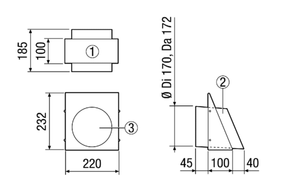 Die formschönen Fortluft-Wandstutzen aus Edelstahl werden an der Außenwand eines Gebäudes befestigt und sind für den Fortluftausblas bestimmt. Die Fortluft wird nach vorne ausgeblasen. Im Lieferumfang ist eine Fortlufthaube mit Kondensat-Abtropfkante und Vogelschutzgitter enthalten.Artikel: KW-FL 16W, Luftrichtung: Entlüftung, Einbauort: Außenwand, Material: Edelstahl (V2A), Farbe: reinweiß, ähnlich RAL 9010, Gewicht: 1,5 kg, Nennweite: 160 mm, Breite: 220 mm, Höhe: 232 mm, Tiefe: 100 mm, A: 232 mm, B: 220 mm, Geeignet für Boxlüfter: nein, Geeignet für Dachlüfter: nein, Geeignet für Rohrlüfter: nein, Geeignet für Wärmerückgewinnungsanlagen: ja, Geeignet für Wandaufbaulüfter: nein, Geeignet für Wandeinbaulüfter: nein, Geeignet für Wohnhauslüfter: ja, Geeignet für Zentrifugallüfter: nein, Geeignet für Zirkulationslüfter: nein