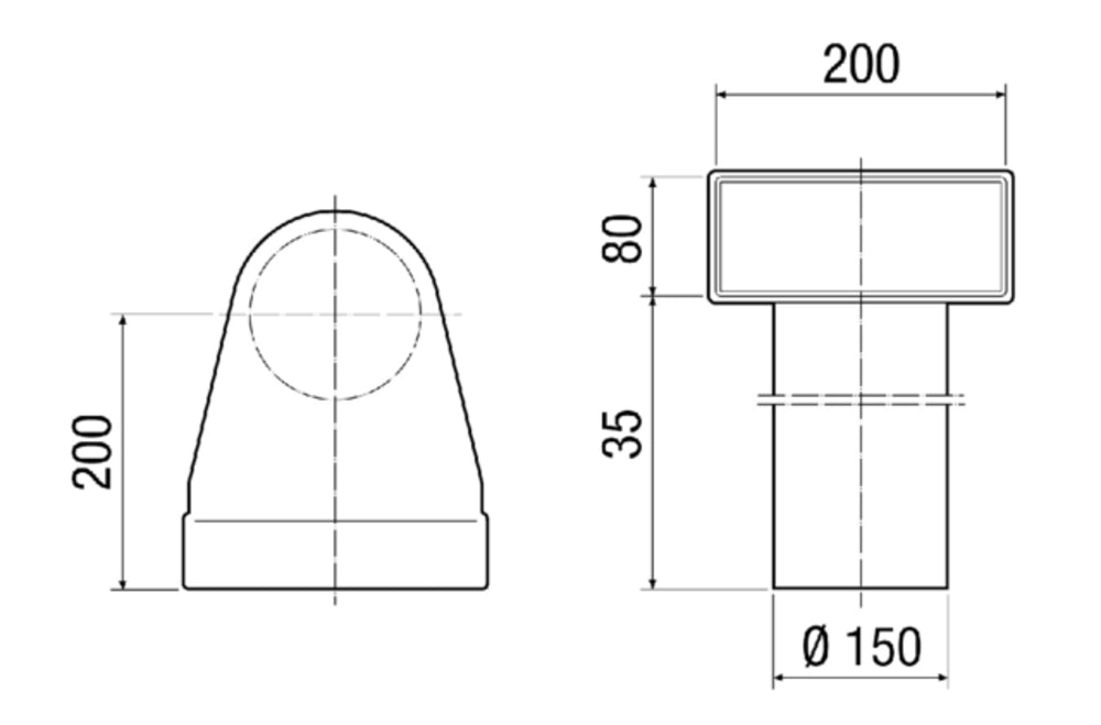 90°-Übergangsstück vom runden Querschnitt (Zu- oder Abluftventil) auf Einschubadapter MF-WE. Anschlussstutzen mit Muffenmaß.Artikel: MF-W150 80/200, Luftrichtung: Be- und Entlüftung, Einbauort: Decke / Fußboden / Wand, Material: Stahlblech, verzinkt, Gewicht: 0,7 kg, Nennweite: 150 mm, Breite: 275 mm, Höhe: 115 mm, Tiefe: 200 mm, A: 80 mm, B: 200 mm