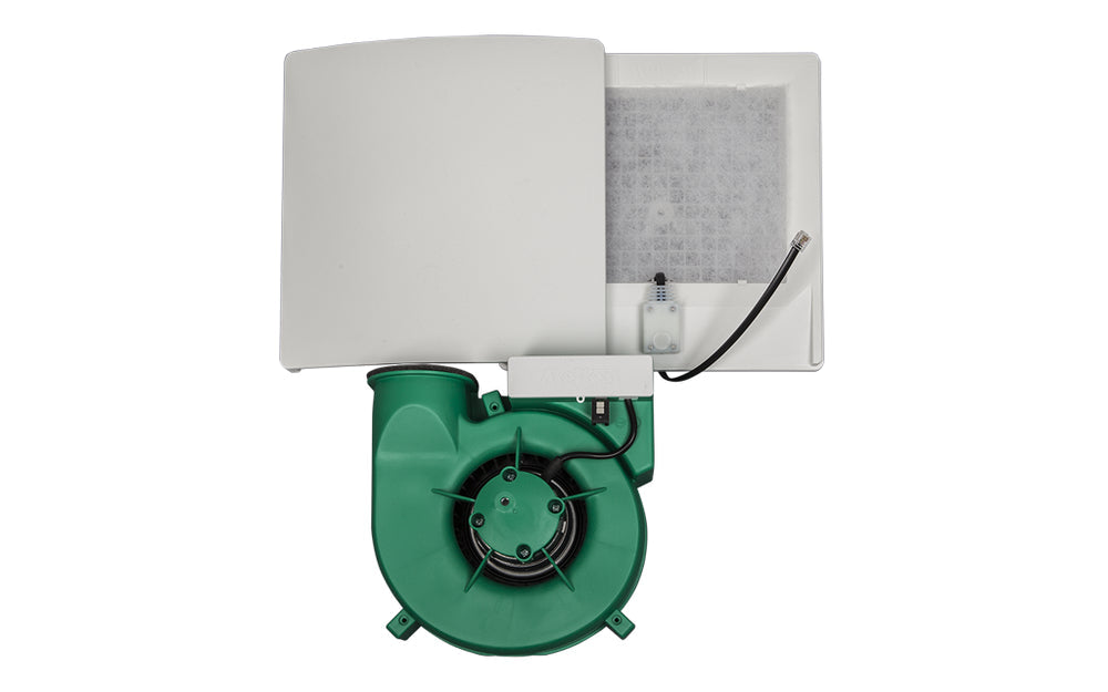 Aufputzgehäuse Vario Typ A für Einbau in Bad und WC. Zweiteiliges Kunststoffgehäuse, Farbe Abdeckhaube: Reinweiß (RAL 9010). Feuerwiderstandsklasse K90-18017. Kunststoff-Anschlussstutzen DN 75. Einteilige Kunstoffrückschlagklappe. Ausblasrichtung beliebig (oben links - rechts, unten links - rechts). Allgemeine Bauaufsichtliche Zulassung: Z.51.1-309. B x H x T 262 x 262 x 105 mm.