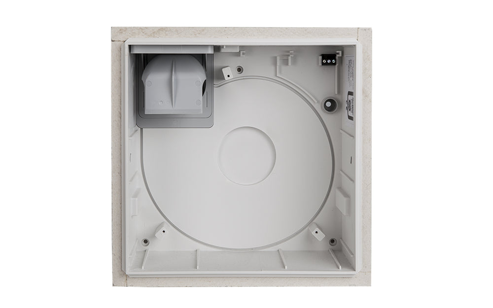 Gebäude mit Brandschutzanforderung innerhalb und außerhalb feuerbeständiger Schächte. Einbau in Bad und WC. Kunststoffgehäuse mit Brandschutzummantelung und Putzschutzdeckel. Feuerwiderstandsklasse K90 18017. Kunststoff-Anschlussstutzen DN 75. Einteilige Kunstoffrückschlagklappe. Wand- und Deckeneinbau, Ausblas nach oben, rechts und links. Allgemeine Bauaufsichtliche Zulassung: Z.51.1-309. Abmessungen: H x B x T 263 x 263 x 110 mm.