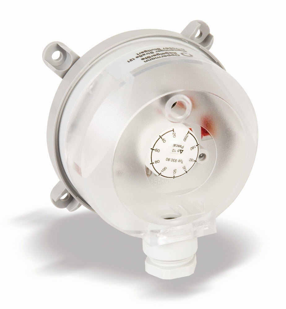 Zum Überwachen von Über-, Unter- oder Differenzdruck von Luft z. B. als Keilriemen- und Filterüberwachung, sichtbarer Einstellknopf mit Richtwertskala, 2 Anschluss stutzen einschl. 6 mm PVC-Schlauch (Anschluss-Klimaset). Messbereich 20-200 Pa, Schaltdiff. 10 Pa.