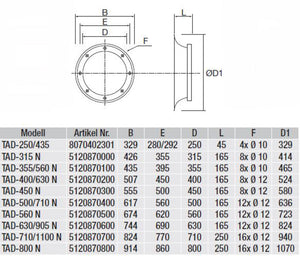 S&P Ansaugdüse TAD-450 N mit Schutzgitter und Anschlussflansch