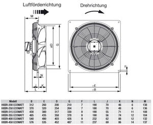 S&P Axial-Wandventilator HXBR-355 ECOWATT mit EC-Motor und quadratischer Wandplatte, 230V