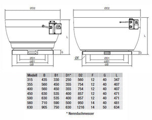 S&P Dachventilator CTVT/4-450-K, vertikal, 120°C